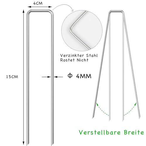 Vielseitig einsetzbar und wiederverwendbar – Verwenden Sie die verzinkten Gartenstifte, um Landschaftsgewebe, Frostschutzgewebe, künstlichen Rasen und Tropfbewässerungsrohre zu befestigen. Diese Rasenstifte können auch Outdoor-Matten, Zelte, Kunststoffartikel, Maschendraht, Vogelnetze, Katzenabschreckungsquadrate, Hühnerdraht, Einfassungen und Tierzäune sichern.