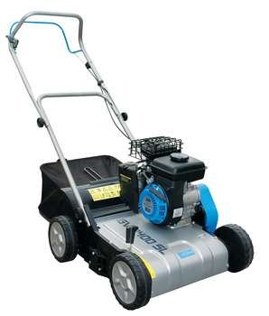 Leistungsstarker Benzinvertikutierer zum Ablösen der Filzschicht (Pflanzenreste, Moos, Unkraut) sämtliche dem Rasen.
