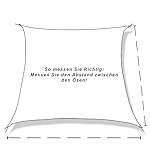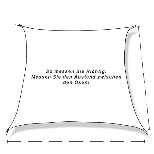 Die Doppelnaht, speziell zur Aufspannung geschaffen, in Verbindung mit dem Markengewebe bieten höchste Sicherheit in der Execution. Also können diese Sonnensegel schwermütig Verwendung von richtigem Spannmaterial abgehärtet und extrem straff gespannt werden.Die Größe des Segels wir von Öse zu Öse gemessen.