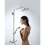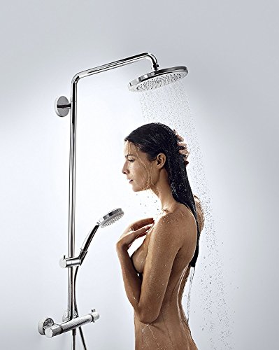 Duschsystem bestehend aus: Kopfbrause (Ø 160 mm), Brausetange, Handbrause (100 mm), Brauseschieber, Thermostat, Brauseschlauch (1,60 m)