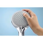 Vier Strahlarten: Aus der Kopfbrause sprudelt Rain, aus der Handbrause Rain, Normalstrahl, Shampoostrahl und Massagestrahl