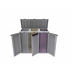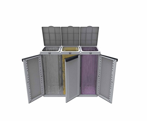 Ausgestattet mit Halterungen für drei Müllsäcke mit einem Volumen von max. 120 Liter pro Sack. Kann aber auch prima ohne Säcke als großzügige Staufläche verwendet werden für z.B. Grills, Gartenutensilien, u.a. Auch in Haushalt, Garage und Werkstatt prima einzusetzen