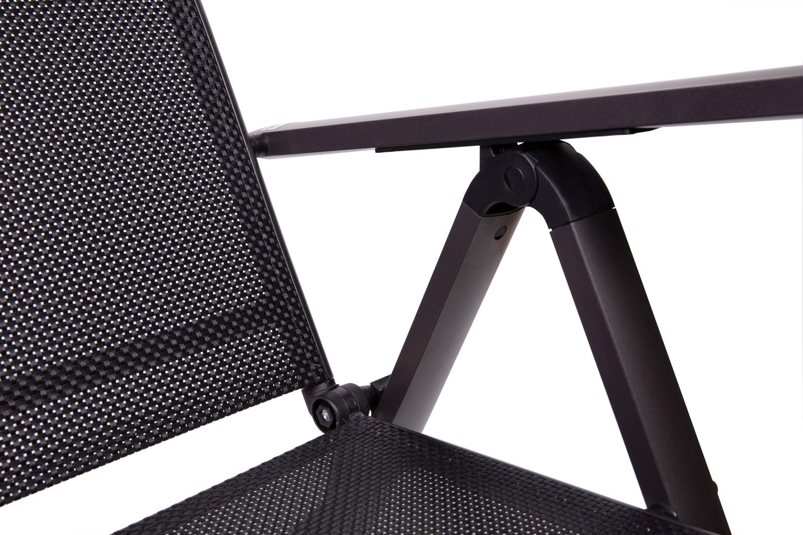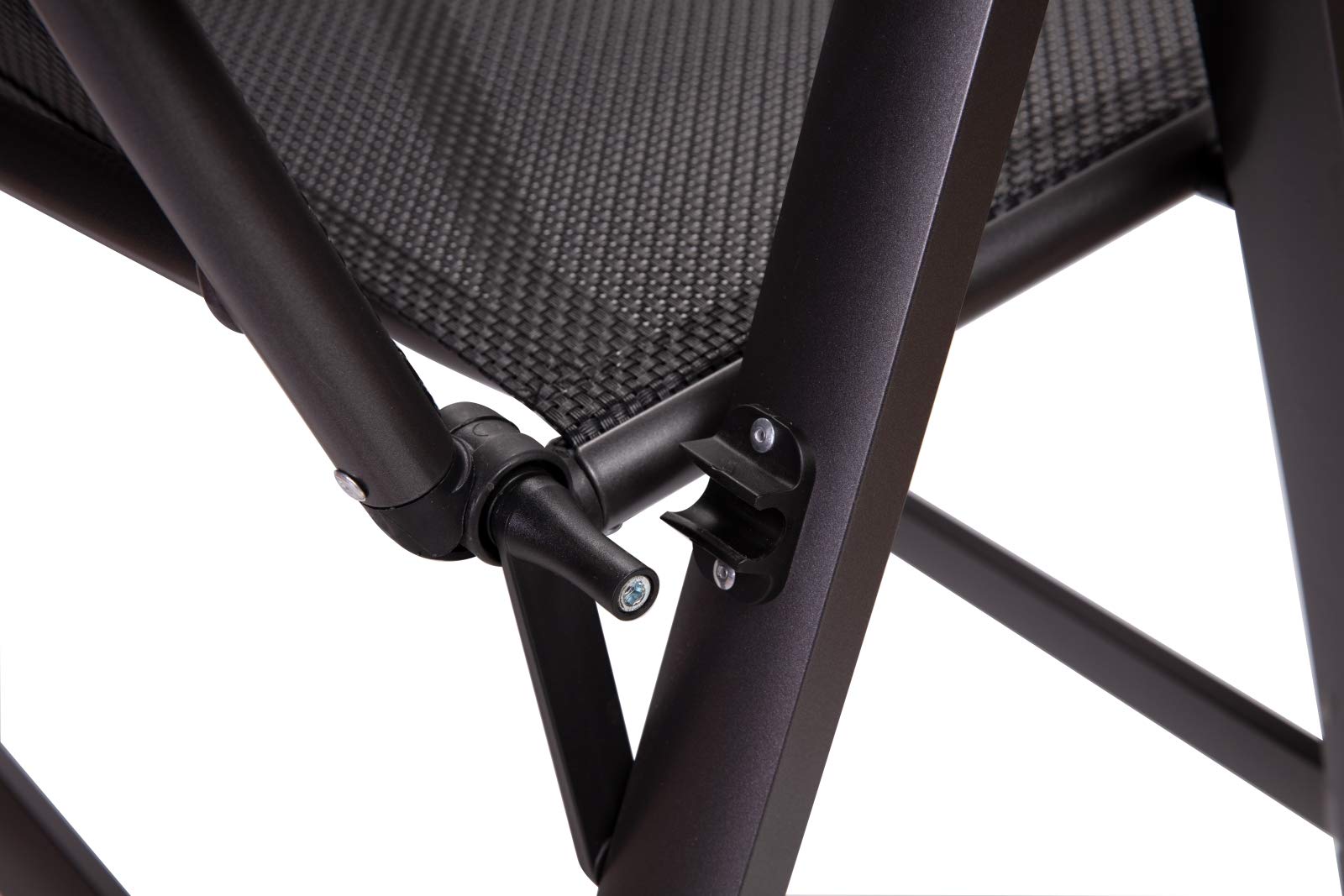 Hochwertige Verarbeitung: Das Gestell und die Armlehnen des Multipositionssessels sind aus robustem Aluminium gefertigt und witterungsbeständig.
