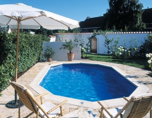 Dimension: 8,50 m x 4,90 m Ovalbecken – 1,32 m Zutiefst/Augenfällig