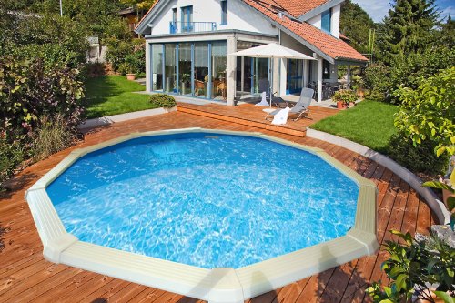 Komplettset per Batterie Liner, Fußboden Vlies, Sandfilteranlage, Saug-Poolpumpe, Filtersand, Skimmer im Übrigen Kunststoff A- Frame Badeleiter
