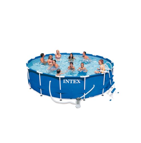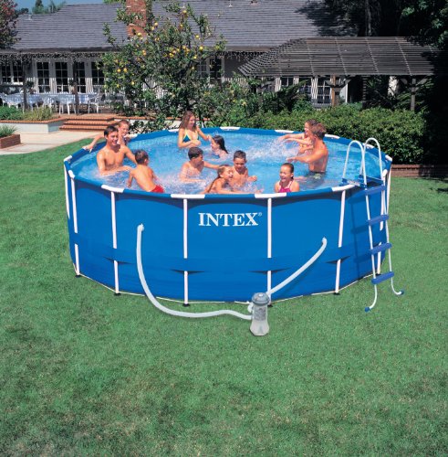 Intex 12-56949 Frame Pool Set Rondo III Kartuschenfilter 3.800 l/h, Leiter, Abdeckplane, Bodenschutzplane, Skimmer, Reinigungsset