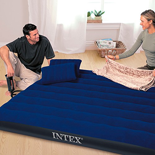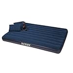 With plush flocking on the top, this Queen-sized Intex Classic Downy airbed provides a more luxurious sleeping surface and helps keep bedding from slipping. This package includes two inflatable pillows and a hand pump. Crafted with durable heavy gauge vinyl, the cozy flocked top cleans easily and is waterproofed for camping use. It’s equipped with a quality-tested, 20.8-gauge waterproof flocked top, along with 14-gauge vinyl beams and 15-gauge sides and bottom. And its 2-in-1 valve has an extra wide opening to make quick work of either inflation or deflation.