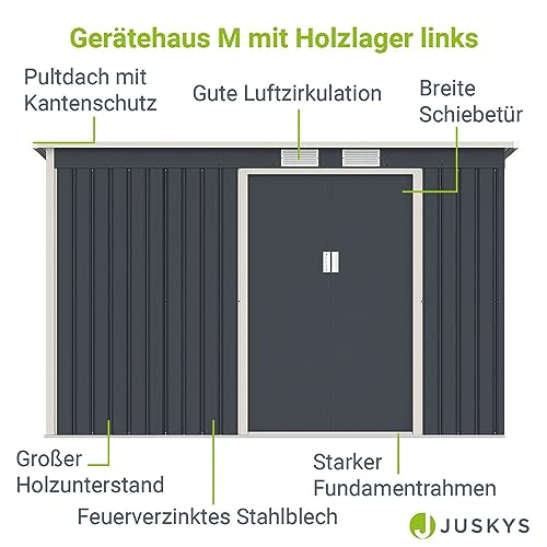 ✅ Gut geschützt: Robustes Gerätehaus M mit Pultdach in Anthrazit aus feuerverzinktem Stahlblech; trotzt Witterung, UV-Strahlung & Verschmutzungen; langlebig, stabil, widerstandsfähig & wasserdicht