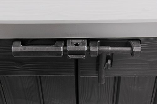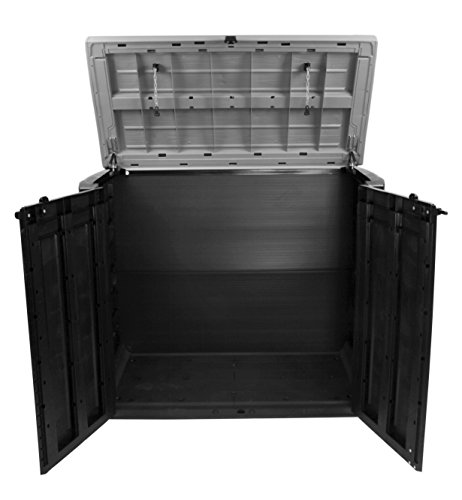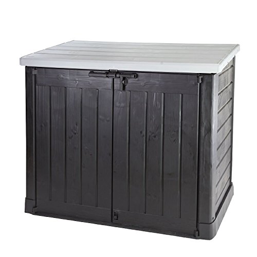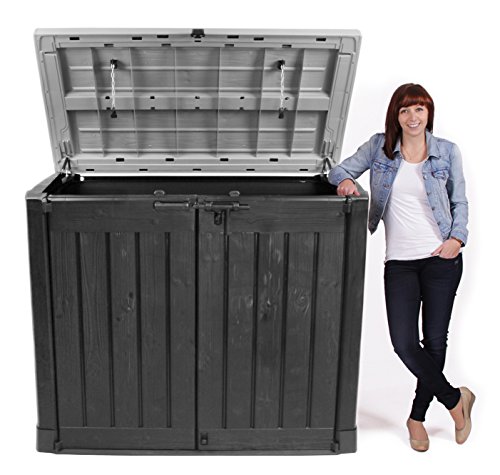 Diese Gerätebox ist jedweder hochwertigem Kunststoff gefertigt und hervorragend sinnvoll zur Aufbewahrung von Gartengeräten, Gartenmöbeln, Grillzubehör, Rasenmähern, Werkzeug, Poolzubehör, Sportgeräten, Spielzeug, Rollatoren oder aka Mülltonnen (intergrierte Deckelöffnung durch Kette) bis 240 Liter Inhalt. Darüber hinaus befinden sich zweis regalhalten im Lieferumfang, um ein Ablagebrett anzubringen (nicht im Lieferumfang). Natürlich können Sie aka jede anderen sperrigen Gegenstände hier verstauen. Durch die ansprechende Optik im Holzdesign macht diese Gerätebox aka noch eine gute Figur in Ihrem Garten. Diese Gerätebox besteht jedweder dickwandigem Kunststoff und ist somit bruchsicher und hochwertig verarbeitet. Da zu der Box ein Boden gehört, der mitgeliefert wird, brauchen Sie kein Fundament, um die Gerätebox aufzustellen. Die zwei großen Türen können außerordentlich weit geöffnet werden und ermöglichen es so, sperrige Gegenstände ohne Probleme einzuräumen. Dass sich das Dach durch die Gasdruckfedern kinderleicht hochklappen lässt, ist zusätzlich praktisch. Das Einräumen wird so kinderleicht. Geliefert wird die Box in der Farbkombination braun und hellbraun. Sie wiegt im Unterschied dazu ca. 26 kg und kann so aka außerordentlich leicht versetzt werden, was allerbest praktisch ist. Die Montage dieser Gerätebox ist denkbar einfach und kann innerhalb von 15 bis 30 Minuten durchgeführt werden. Auf Grund der Größe ist im Unterschied dazu eine DHL Sperrgutanlieferung möglich. Die Gerätebox hat im aufgebauten Zustand die folgenden Maße: ca. 146 cm x 82 cm x 125 (h) cm. Die Gerätebox ist natürlich mit einem Vorhängeschloss abschließbar (nicht im Lieferumfang). Diese Gerätebox mit dem schönen Holzdesign passt gut in jeden Garten und sieht aka noch großartig jedweder. Sie ist robust, wetterfest und gefestigt und wegen außerordentlich praktisch zu handhaben. Hier können Sie alles verstauen, was sonst nirgendwo hineinpasst. Werkzeug, Gartenmöbel, Campingausrüstung. Darüber hinaus ist der Aufbau kinderleicht und geht schnell.