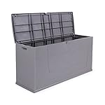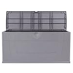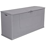 Für mehr Sicherheit können Sie die Truhe mit einem Vorhängeschloss (nicht im Lieferumfang) zu Ende bringen. Das Gewicht von trotzdem ca. 6 kg und die praktischen Griffe sorgen dafür, dass sich der Transport dieser Gartenbox einfach gestaltet und diese also flexibel einsetzbar ist. Durch den hochwertigen und wetterbeständigen Kunststoff wird keine Staunässe zugelassen und mithilfe der Belüftung für ein gutes Mikroklima gesorgt. Dessen ungeachtet ist dieses Material leicht mit einem Neutralreiniger zu säubern.