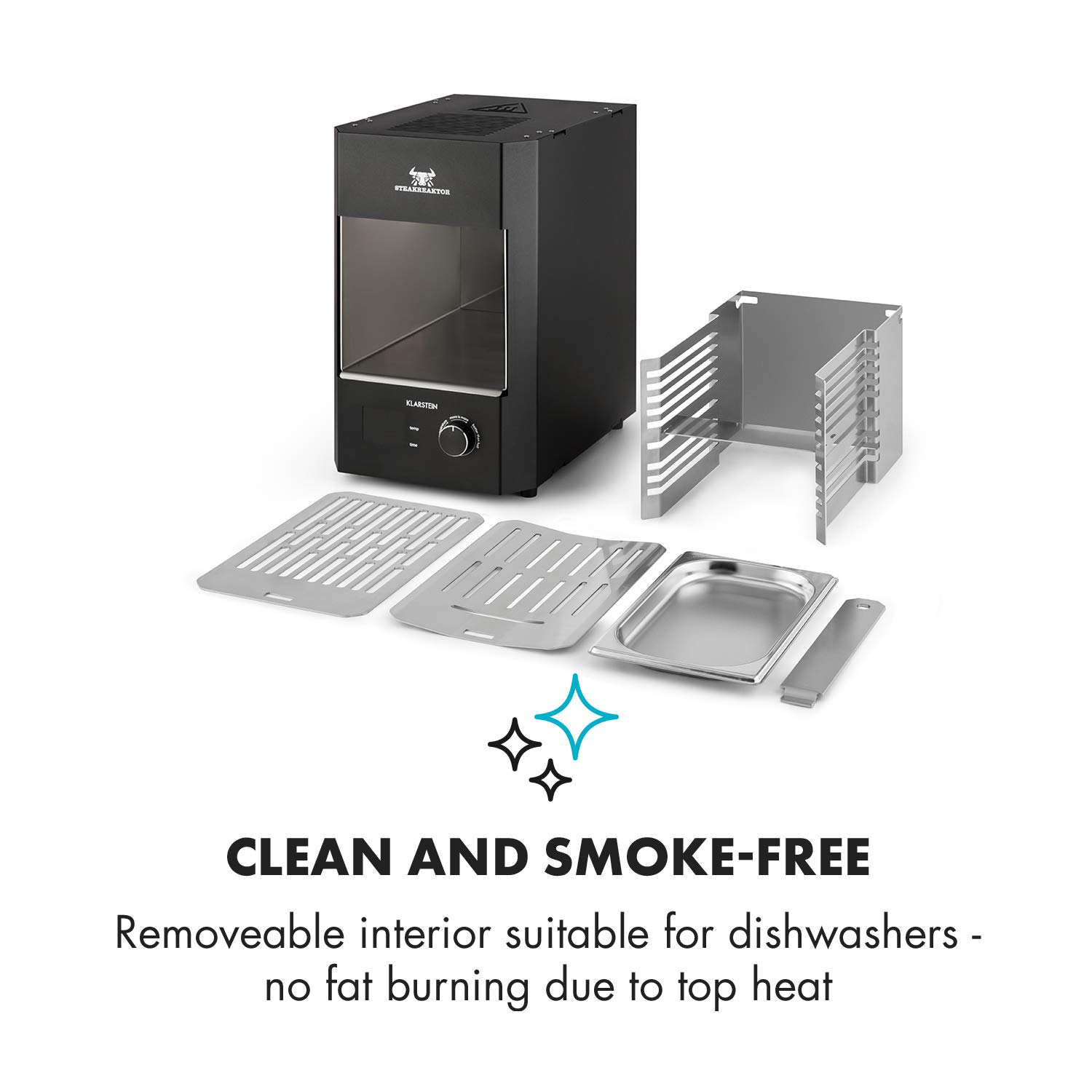 SPIELEND EINFACH: Dank seiner einfachen Handhabung, der kinderleichten Reinigung durch die herausnehmbaren, spülmaschinenfesten Komponenten und seiner Vielseitigkeit garantiert der Steakreaktor Hochleistungsgrill vorzügliche Ergebnisse beim Grillen.