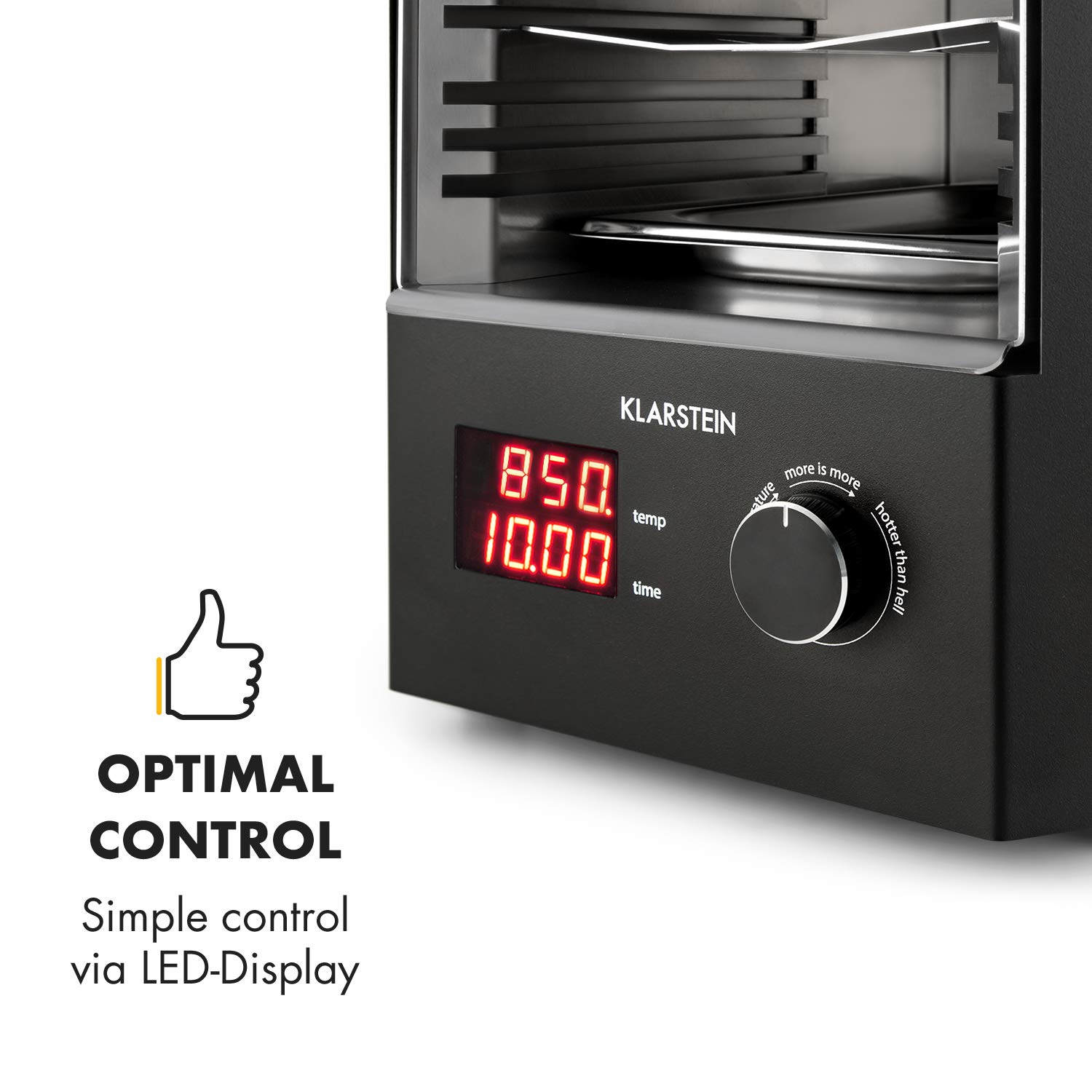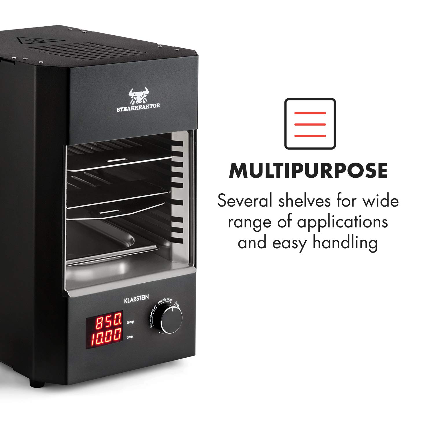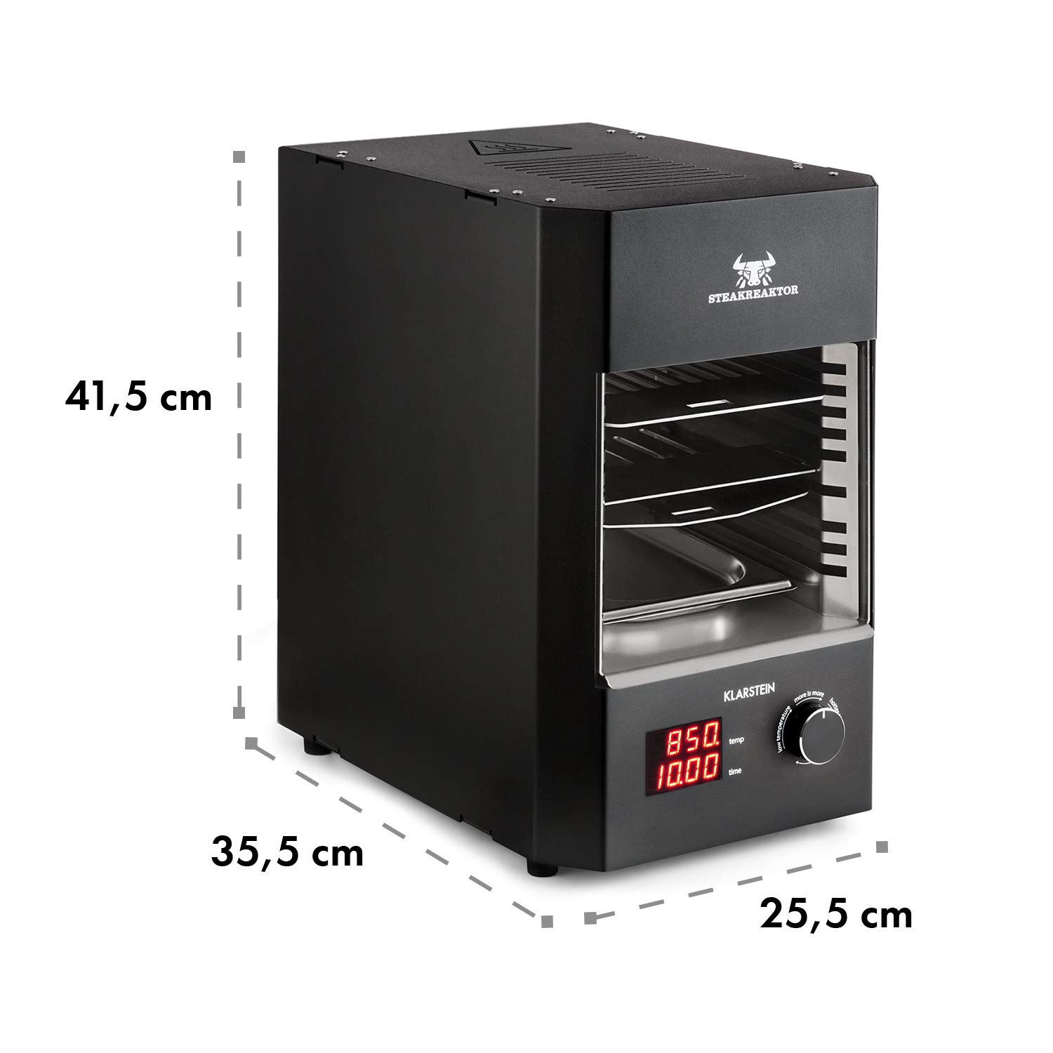 HOCHTEMPERATUR-GRILL: Der Steakreaktor 2.0 revolutioniert mit seinen 850°C Oberhitze die Steakzubereitung. Dank der von Klarstein speziell entwickelten Keramikheizelemente gibt der Hochleistungsgrill eine besonders intensive Strahlungswärme ans Fleisch ab.