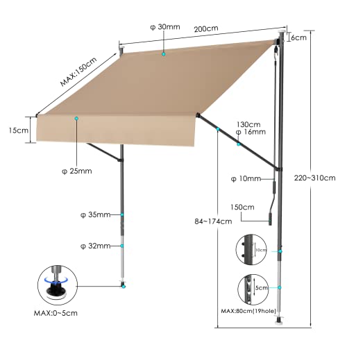 【UV-BESTÄNDIGES STOFFE & FESTES LEGIERUNG MATERIAL】Der einziehbare Markisenbügel ist aus Eisen und Aluminium gefertigt, und der Stoffteil ist aus Polyester mit wasserdichter PU-Beschichtung. Es könnte eine stabile und komfortable Umgebung für Sie am Nachmittag zu ruhen.