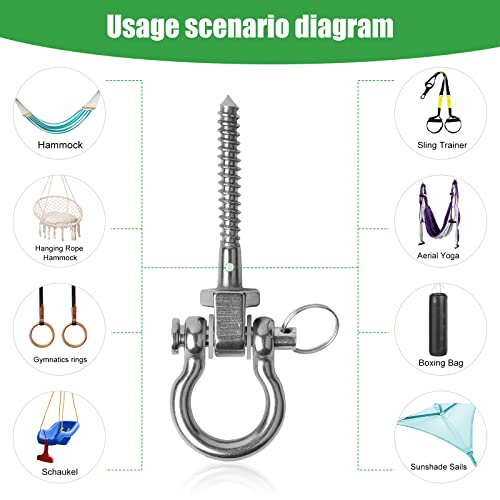 【Vielseitige Schaukelhaken】: Unsere Haken können im Innen- oder Außenbereich an Betondecken oder Holzbalkendecken verwendet werden. Ideal für Hängetrainer, Veranda-Schaukeln, Schaukeln, Yoga-Schaukeln, Hängematten-Stühle, Gymnastik-Schaukeln, Sandsack-Schaukeln, zur Gewährleistung maximaler Sicherheit.