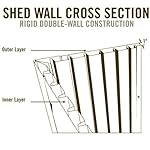 Features- 6 small skylights, 2 shatterproof polycarbonate windows, 2 screened vents, 2 decorative shutters, 2 peg strips, 2 90″ x 9″ shelves, 4 corner shelves.