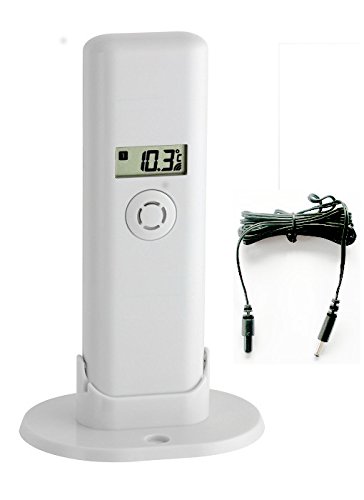 Er besteht ganz einem Empfangsgerät mit Display, und 2 Kabel- Aussensender zur Messung der Wassertemperatur in bis zu 2 Meter Abgrund.