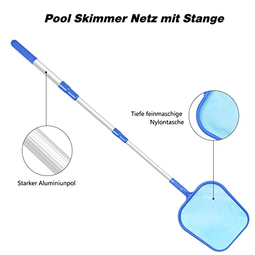 Werkstoff: Sie Ansammlung Skimmer Satz hergestellt alle hochwertiger Kunststoffrahmen, Polypropylengewebe unter anderem Alu Teleskopstangen. Dasjenige feinmaschige Nylonnetz ist so konstruiert, auf die Weise es außerordentlich streckbar bleibt.