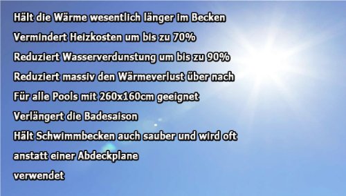 Diese Solarfolie eignet sich für aufgebraucht Pools mit mit 260×160 cm Rechteck..