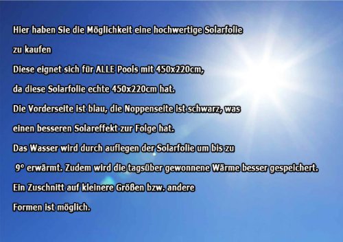 Das Wasser wird durch auflegen der Solarplane um bis zu 9 Tönung erwärmt.
