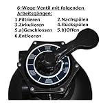Über das Absperrvorrichtung können Sie die verschiedenen Arbeitsvorgänge eichen: Durchsieben, Rückspülen, Nachspülen, Zirkulieren, Entleeren, Winterstellung und geschlossen.