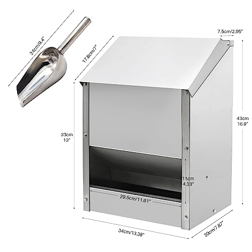 【KOMMT MIT EINER SCHAUFEL】 Dieser Hühnerfutterspender jeglicher rostfreier Stahl wird über einer Edelstahlschaufel geliefert, über Dieser Solche angenehm Kost zugunsten Ihre Geflügelställe zusammenziehen herrschen.