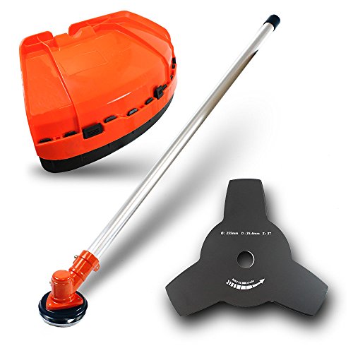 Inklusive Verbindungsrohr, 3-Zahnblatt außerdem Schneidschutz.