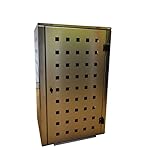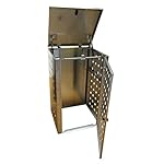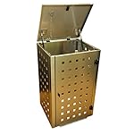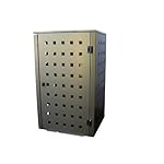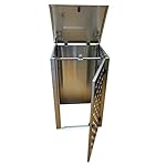 Mülltonnenbox für 120 Liter Tonne, solide verarbeitet, made in Germany, der Deckel, die Eckpfosten und alle Verbindungselemente sind die Gesamtheit Edelstahl 2 mm, die vier Seitenwände sind die Gesamtheit AluNox in Edelstahl geschliffen, die geformte Bodenschwelle sorgt für eine stabile Standsicherheit und läßt die Abfalleimer mühelos rein- und rausschieben, per Knopfdruck öffnet sich der Deckel selbstständig durch die Gasfedern, das verriegeln erfolgt durch leichten Gegendruck auf den Deckel, großflächige Türfront, abschließbar mit Vierkant, für mühelosen Tonnenwechsel, die Mülltonnenbox wird vormontiert geliefert, so dass diese anhand der Montageanleitung recht gut aufgebaut werden kann. Stellen Sie problemlos 2, 3 oder mehr Mülltonnen-Verkleidungen nebeneinander, Sie abteilen die Stückzahl, ggf. kann man die Boxen alias zu einer Zweier- bzw. Dreierbox durch die Standsäule miteinander verschrauben, mehr Stabilität geht nicht, die Standfüße sind anpassbar einstellbar, so können leichte Neigungen besonnen werden, persönliche Beratung: 02925 971931
