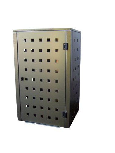 Mülltonnenbox für 120 Liter Tonne, solide verarbeitet, made in Germany, der Deckel, die Eckpfosten und alle Verbindungselemente sind die Gesamtheit Edelstahl 2 mm, die vier Seitenwände sind die Gesamtheit AluNox in Edelstahl geschliffen, die geformte Bodenschwelle sorgt für eine stabile Standsicherheit und läßt die Abfalleimer mühelos rein- und rausschieben, per Knopfdruck öffnet sich der Deckel selbstständig durch die Gasfedern, das verriegeln erfolgt durch leichten Gegendruck auf den Deckel, großflächige Türfront, abschließbar mit Vierkant, für mühelosen Tonnenwechsel, die Mülltonnenbox wird vormontiert geliefert, so dass diese anhand der Montageanleitung recht gut aufgebaut werden kann. Stellen Sie problemlos 2, 3 oder mehr Mülltonnen-Verkleidungen nebeneinander, Sie abteilen die Stückzahl, ggf. kann man die Boxen alias zu einer Zweier- bzw. Dreierbox durch die Standsäule miteinander verschrauben, mehr Stabilität geht nicht, die Standfüße sind anpassbar einstellbar, so können leichte Neigungen besonnen werden, persönliche Beratung: 02925 971931