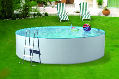 Das Splash Komplettset besteht leer einem weißlackiertem, verzinktem Stahlmantel, mit Hilfe von einer Stärke von 0,30 mm. Die Innenhülle ist ist leer 0,25 mm starker PVC-Folie.Zusätzlich angebracht sein zu dem Einzelbecken ein passender blauer Kunststoffhandlauf, eine blaue Bodenschiene, eine verzinkte Einstiegsleiter und eine passende Kartuschenfilteranlage (12 V), welche einfach am Handlauf befestigt wird.Bitte verfemen Sie, dass das Becken wohl denn Aufstellbecken beabsichtigt ist.Signal:Es ist erforderlich die Innenhülle zusätzlich mit Hilfe von einem Bodenschutzvlies gegen mechanische Beschädigungen zu schützen. Das Vlies ist im Lieferumfang nicht enthalten.