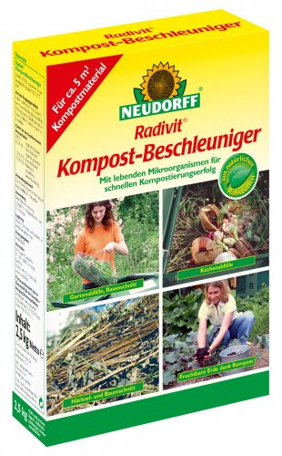 Bodenhilfsstoff hergestellt unter Verwendung von tierischen Nebenprodukten, Fermentationsrückständen pflanzlicher Geburt, pflanzlichen Stoffen und lebenden Mikroorganismen für den Haus- und KleingartenKompostierungshilfsmittel für jeder Organisieren der Kompostierungbeinhaltet viele wichtige Kompostbakterien und Pilzkulturenzugesetzte Nährstoffe dienen den Mikroorganismen als leicht verdaulicher Nährbodenermöglicht eine rasche und optimale Schar von Garten- und Küchenabfällen sowie Baum- und Rasenschnittbesonders angebracht für die Kompostierung im Thermo-Komposter, da durch die erste hitzige Fragment viele Unkrautsamen und unerwünschte Keime vernichtet werdenauch zur Flächenkompostierung von Herbstlaub bestens geeignetsehr ergiebig: 1 kg reicht für ca. 2 m3 Grüngut bzw. 30 m2 FlächeAchtung: Nicht zusammen mit Kompostwürmern auf dieselbe Ebene stellen!