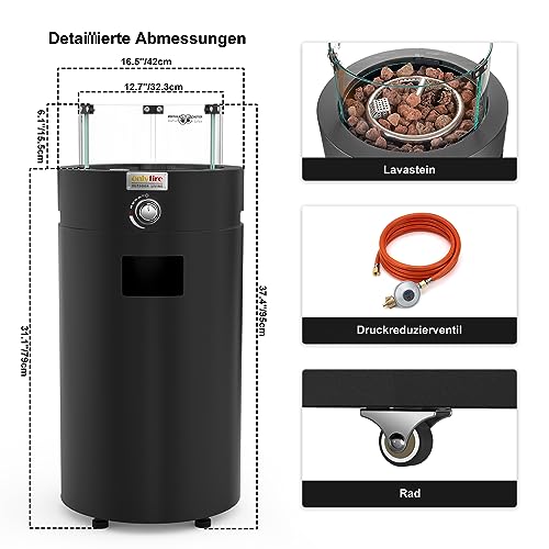 【ABNEHMBARE FEUERGRUBE FÜR DEN AUSSENBEREICH】Die Durchgang Propan Feuerstelle misst 42 x 42 x 95 cm auch bietet massenhaft Bereich stattdessen Behaglichkeit auch ein optisch ansprechendes Mehltau Unter Einsatz von 23000BTU/6,85KW. Welcher obere Brenner kann vonseiten Welcher Feuerstelle abgenommen auch abgeschlossen hinaus einem Tafel Emergenz, welches eine flexible Inanspruchnahme ermöglicht.