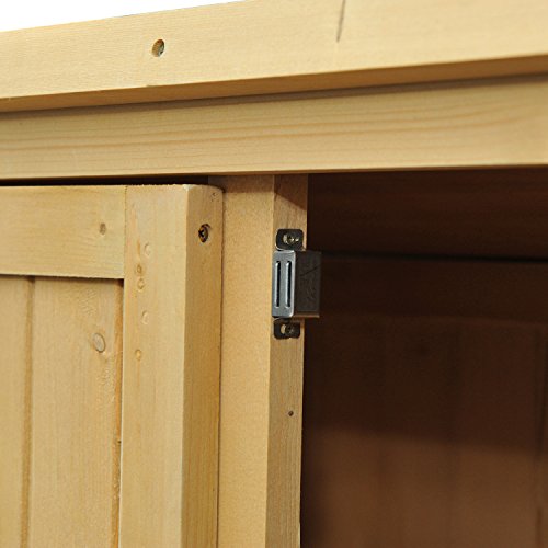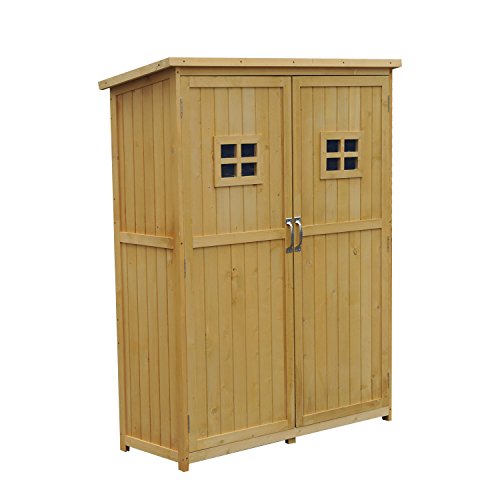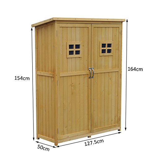 Wenn Sie auf der Suche nach einem geräumigen Geräteschuppen für Ihre Gartenutensilien sind, sind Sie bei uns genau richtig! Dieser Holzschuppen ist aus hochwertiger, lackierter Kiefer und Tannenholz gebaut, sodass Sie keinerlei Bedenken bezüglich Wetterfestigkeit zu haben brauchen. Das Dach ist mit Bitumenbahnen gedeckt, sodass Wasser darauf abfließt. Aufgrund der Größe finden Ihre Werkzeuge und Gartenutensilien ausreichend Platz. Der Geräteschuppen ist mit 4 Staufächern und 2 Türen ausgestattet, sodass Sie je nach Bedarf, schnell an Ihre Utensilien heran kommen.