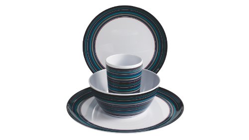 – Werkstoff: robustes Kunststoffmaterial;- Zubehör: 4 Essteller: 25 cm (Durchm.);4 Dessertteller: 19,5 cm (Durchm.);4 Tassen: 10 x 7,5 cm (Durchm.);4 Schalen: 14,5 cm (Durchm.);- Hinweise: bruchsicher; spülmaschinengeeignet; Keinesfalls mikrowellengeeignet;