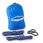 komplettes Hängeset mit Karabiner und 3m-Seile, schnell verpackt im integrierten Packsack mit Kordelzug, hat sie ein sehr kleines Packmass und passt in jeden Rucksack