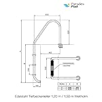 4-stufige Tiefbeckenleiter in längs Bauform durch rutschfesten Edelstahlstufen.
