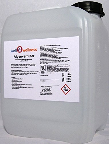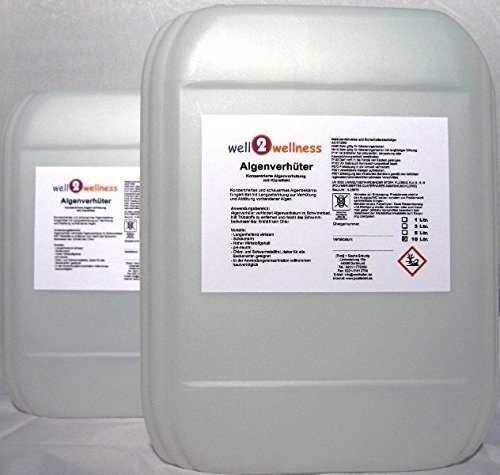 Sie erhalten 2 x 5,0 l Kanister Algenverhüter – Aggregiert + schaumfrei — Anwendungsbereich: Algenverhüter verhindert Algenwachstum im Schwimmbad, hilft Trübstoffe zu lungern und macht das Schwimmbadwasser klar. Enhält kein Chlor! Vorteile: – langanhaltend wirksam / – schaumfrei / – hoher Wirkstoffgehalt / – pH-neutral / – Chlor- und Schwermetallfrei, gleichwohl für jeder Beckenarten angemessen / – in der Anwendungskonzentration vollkommen hautverträglich. Anwendungsempfehlung – Zugabe: Zur besseren Durchmischung in der Nähe des Beckenzulaufs ergänzen. Becken-Vorbehandlung: Boden und Wände zur Desinfektion und Bildung einer Schutzschicht mit einer 5 %-Abtrennung einsprühen und antrocknen lassen. Erstzugabe: pro 10 m³ Wasser 50 – 100 ml Algenverhüter hinzurechnen. Nachdosierung: wöchentlich pro 10 m³ Wasser 20 ml (Hallenbad) bzw. 40 ml (Freibad) ergänzen. Bei bereits veralgtem Wasser Stossbehandlung mit 10 – 15 ml/m³ abarbeiten. Wichtige Hinweise: Bei stärkerem Baddebetrieb, Gewitterregen, höheren Temperaturen oder Entstehen von glitschigen Belägen im Becken sind häufigere oder erhöhte Zugaben bis zur doppelten Summe erforderlich.