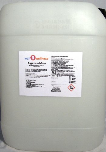 Algenverhüter – Aggregiert + schaumfrei — Anwendungsbereich: Algenverhüter verhindert Algenwachstum im Schwimmbad, hilft Trübstoffe zu abschütteln und macht das Schwimmbadwasser klar. Enhält kein Chlor! Vorteile: – langanhaltend wirksam / – schaumfrei / – hoher Wirkstoffgehalt / – pH-neutral / – Chlor- und Schwermetallfrei, doch für allesamt Beckenarten adäquat / – in der Anwendungskonzentration vollkommen hautverträglich. Anwendungsempfehlung – Zugabe: Zur besseren Durchmischung in der Nähe des Beckenzulaufs addieren. Becken-Vorbehandlung: Boden und Wände zur Desinfektion und Bildung einer Schutzschicht mit einer 5 %-Auftrennung einsprühen und antrocknen lassen. Erstzugabe: pro 10 m³ Wasser 50 – 100 ml Algenverhüter zusammenziehen. Nachdosierung: wöchentlich pro 10 m³ Wasser 20 ml (Hallenbad) bzw. 40 ml (Freibad) addieren. Bei bereits veralgtem Wasser Stossbehandlung mit 10 – 15 ml/m³ ablaufen lassen. Wichtige Hinweise: Bei stärkerem Baddebetrieb, Gewitterregen, höheren Temperaturen oder Entstehen von glitschigen Belägen im Becken sind häufigere oder erhöhte Zugaben bis zur doppelten Betrag erforderlich.