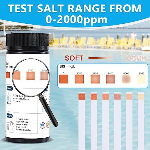 🏊【Schnell und präzise】:Tauchen Sie den Whirlpool Teststreifen etwa 2 Sekunden lang in Wasser, schütteln Sie überschüssiges Wasser nicht ab und halten Sie den Streifen dann 30 Sekunden lang horizontal. Vergleichen Sie mit der Farbkarte und lesen Sie sofort.