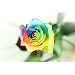 Diese einzigartige Regenbogenrose ist bekannt für ihren kunterbunten Blütenkopf und für ihre ungewöhnliche vielseitige Färbung. Es ist den Rosenzüchtern dessen ungeachtet noch nicht gelungen eine solch außergewöhnliche Rose auf natürlichem Wege durch ein Kreuzungsexperiment zu züchten, zugegeben ist die Regenbogenrose durch ein spezielles Verfahren gefärbt. Dadurch, dass jede dieser Rosen einem für sie anstrengenden Färbeprozess unterlag wurde das Blattwerk in Mitleidenschaft gezogen.