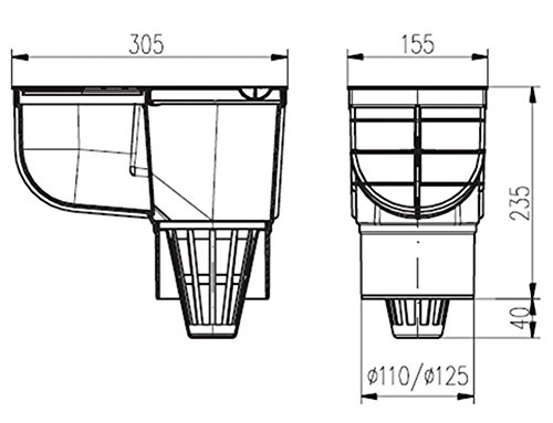 Regensinkkasten – Dachrinnenablauf – Regenrohrblauf