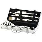 Im robusten Alu-Koffer finden Sie Grillzange, Pfannenwender, Grillgabel und Messer. Sogar ein Pinsel zum Marinieren Ihres Grillguts ist wegen.