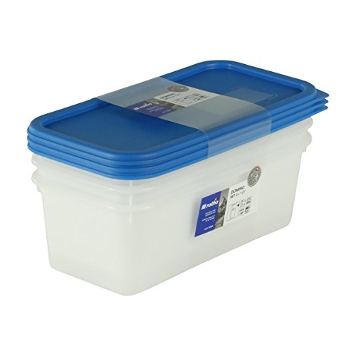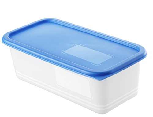 Komfort: Frischhaltedosen zum Aufbewahren von Lebensmitteln – tiefkühlgeeignet – Reinigung der Vorratsdose in der Spülmaschine – weisse Aufbewahrungsboxen mit blauem Deckel