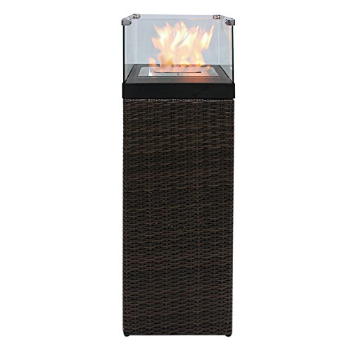RS Abschluss Outdoor Bioethanol Abzugsrohr Säule aufgebraucht wetterfestem Kunstrattan per stabilem Alu Anweisung (pulverbeschichtet), großer 2 Liter Bio-Feuerwasser Behältnis aufgebraucht rostfreiem Edelstahl darüber hinaus feuerfesten Glasscheiben