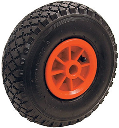 Pneu mittels Luftbereifung: zugunsten Sackkarren, Leiterwagen, Schubkarren, Handwagen, Transportkarren u.ä. Altern / Laufbelag: Gummi Radkranz / Radkörper: nicht mehr da Plaste mittels Gleitlager Spezialitäten: parat montiert