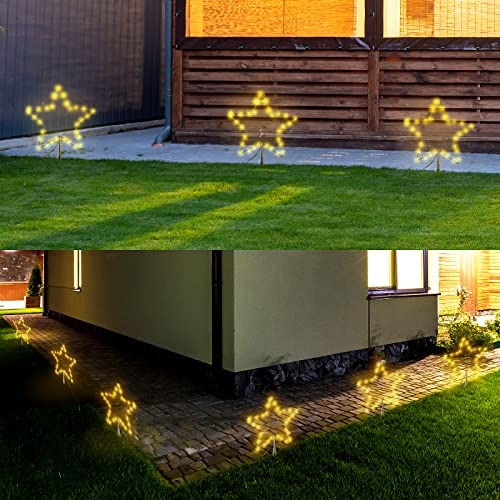 【Fünfeckiger Stern der Eisenkunst】Die einzigartige Struktur des fünfeckigen Sterns aus Eisenkunst, der Lichtkörper ist mit hochwertigem Kupferdraht umwickelt, der solide und schön ist. Der gesamte Körper des Leitungsdrahts ist dunkelgrün, wodurch es auf dem Rasen unsichtbarer wird und die Ästhetik nicht beeinträchtigt wird. Ausgestattet mit drei flexiblen Bodensteckern aus hochwertigem Hartplastik können Sie sich viel einfacher zusammenbauen.