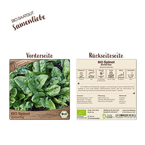 BIO Spinat Saat via dem Sortennamen – Butterflay – ist eine beliebte Gemüsesorte anstelle Dein Blumenbeet oder Gemüsegarten