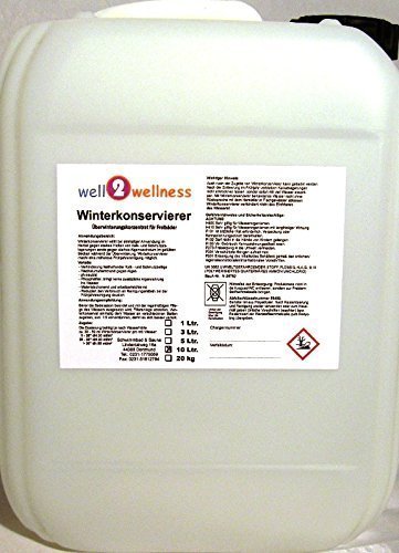 Anwendungsbereich: Winterkonservierer wirkt bei einmaliger Anwendung im Herbst gegen hartnäckiges Adhärieren von Kalk- und Schmutzablagerungen sowie gegen starkes Algenwachstum im gefüllten Becken während der Überwinterung. Winterkonservierer macht eine mühelose Frühjahrsreinigung möglich. Vorteile: -Verhütung fest anhaftender Kalk- und Schmutzbeläge / -wachstumshemmend gegen Algen / -pH-neutral / -phosphatfrei, bringt keine zusätzliche Algennahrung ins Wasser / -materialschonend und arbeitserleichternd / -reduziert den Gelenksverschleiß an Reinigungsmitteln im Frühjahr deutlich. Anwendungsempfehlung: Bevor die Badesaison beendet und mit der regelmäßigen Pflege des Wassers ausgesetzt wird, Filteranlage abschalten, Winterkonservierer einmalig dem Wasser an verschiedenen Stellen zusammenzählen, evtl. im Liebelei 1 : 5 vorverdünnen, damit es sich besser verteilt. Zugabe: Die Dosierung beträgt je nach Wasserhärte ca. 30 – 50 ml Winterkonservierer pro m³ Wasser. 0 – 20° dH: 30 ml/m³ / 20 – 30° dH: 40 ml/m³ / über 30° dH: 50 ml/m³. Wichtiger Hinweis: Bekannt als nach Zugabe von Winterkonservierer kann gebadet werden. Nach der Entleerung im Frühjahr verbleibende Kalkablagerungen nicht antrocknen lassen, sondern sofort mit reich Wasser ejakulieren. Mit Winterkonservierer behandeltes Wasser nicht ohne Rücksprache mit dem Hersteller in Fischgewässer unterlassen. Winterkonservierer verhindert nicht das Einfrieren des Wassers!