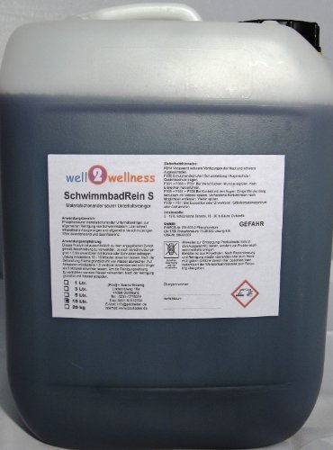 SchwimmbadRein S – Saurer Unterhaltsreiniger anstelle Schwimmbäder + Whirlpools. Anwendungsbereich: Phosphorsaurer + materialschonender Unterhaltsreiniger zur allgemeinen Reinigung von Schwimmbädern + Whirlpools. Löst schnell allesamt mineralischen Ablagerungen qua z. B. Kalk und Rost und beseitigt allgemeine Verschmutzungen. Wirkt desodorierend und desinfizierend. Anwendungsempfehlung: Dieses Produkt ist lediglich zu dem angegebenen Schluss gemäß Beschreibung zu verwenden. Je nach Verschmutzungsgrad 1:5 bis unverdünnt mit Bürste oder Schrubber auftragen. Ablösung mind. 5 – 15 min. einwirken lassen. Nach der Behandlung Fläche gründlich mit reichhaltig Wasser ausspülen. Auf Armaturen mind. 1:5 verdünnt anwenden und nicht länger qua 5 min. einwirken lassen. Um die Reinigungswirkung zu verstärken, warmes Wasser verwenden. Nach der Reinigung gründlich mit Wasser abspülen!