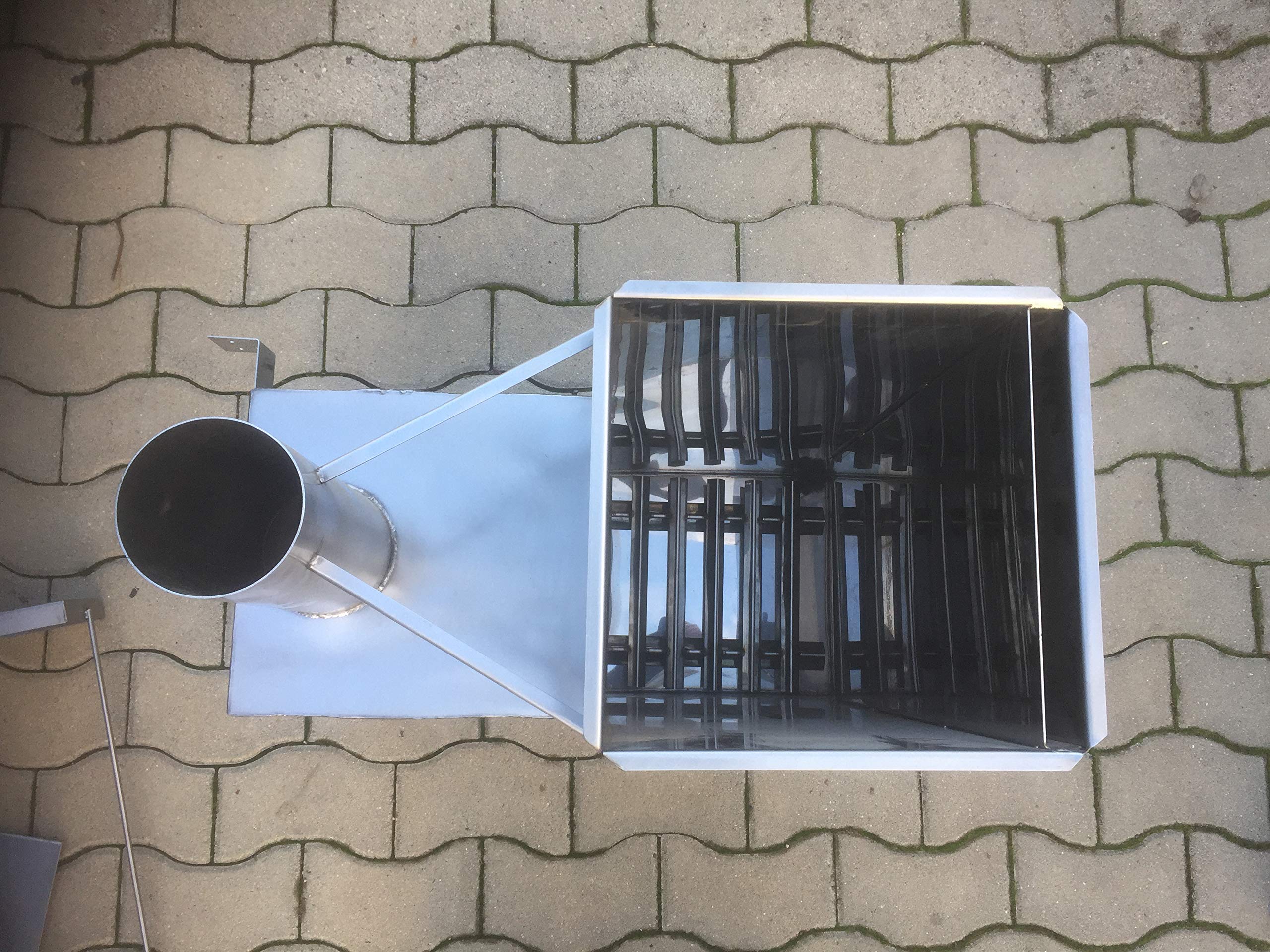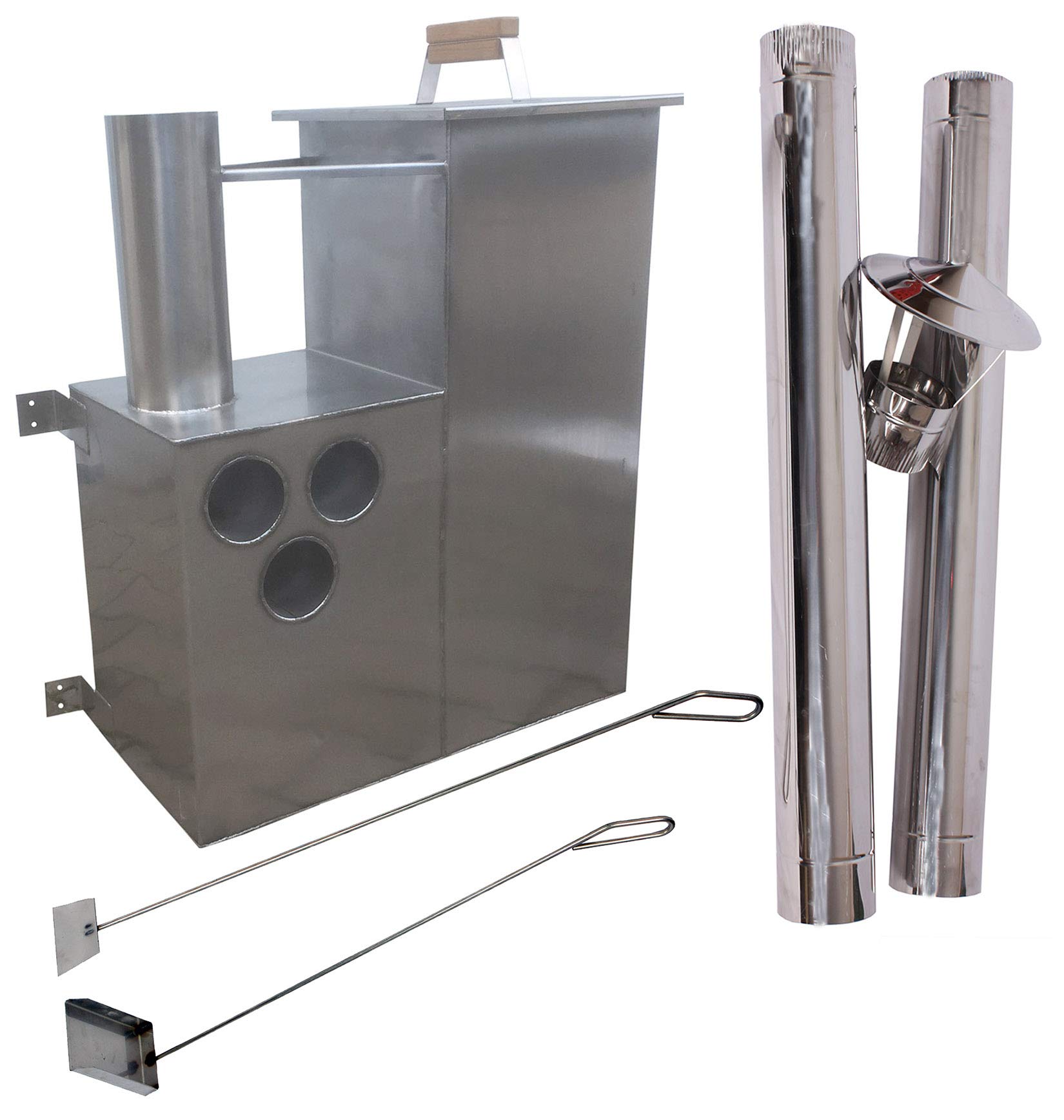 Leistungsumfang: Röhre allesamt rostfreier Stahl Verschluss per Holzgriff Ofenroste 2m Abzug per Regenhaube zwei Ascheschaufeln.
