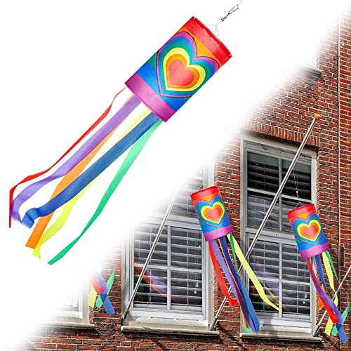 SEMINISMAR Regenbogen Windsack,windsack für draußen,windsack für fahnenmast,Windsack mit Haken,Garten Wetterfahne Balkon Äols Glöckchen,für Garteninnenräume,schwul Pride-Monat-Parade